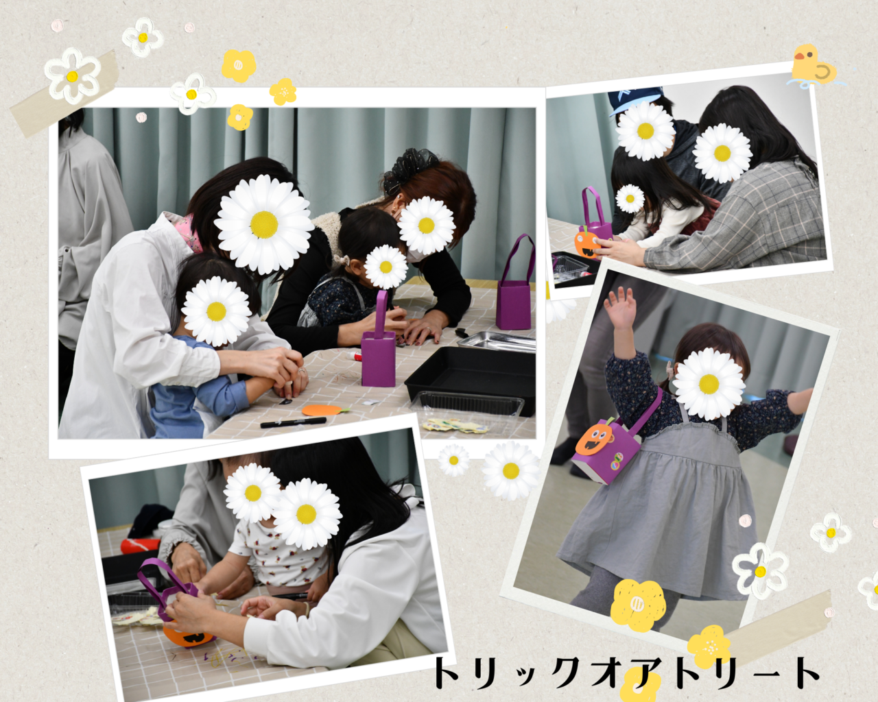 バッグが完成するとトリックオアトリートをしてお菓子を貰いました。