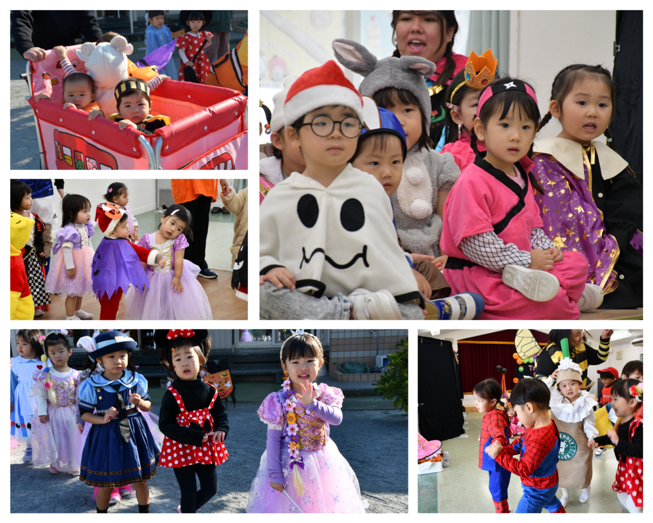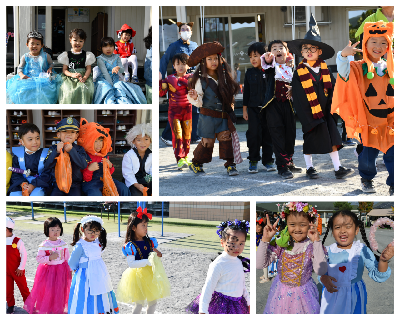 お気に入りのコスチュームに身をまとって登園してきた園児たち。