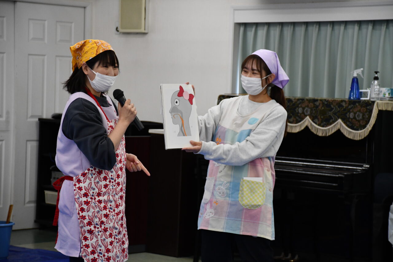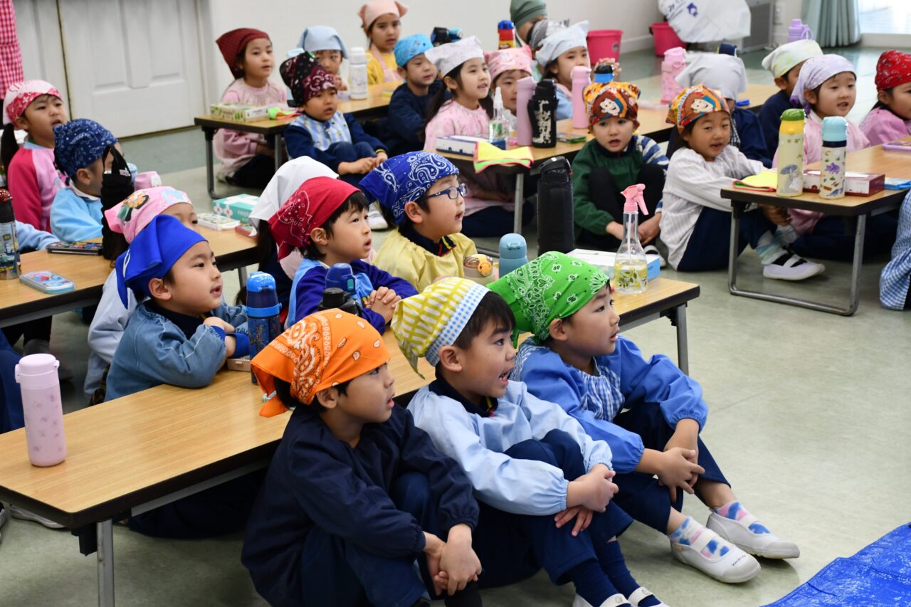 まず初めに、餅が何からできているのか教えてもらい、次に餅つきの注意点や餅の食べ方について学びました。