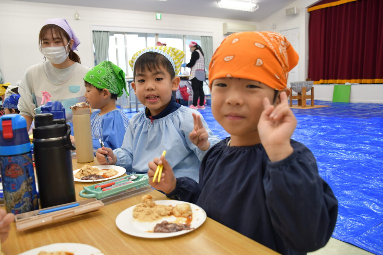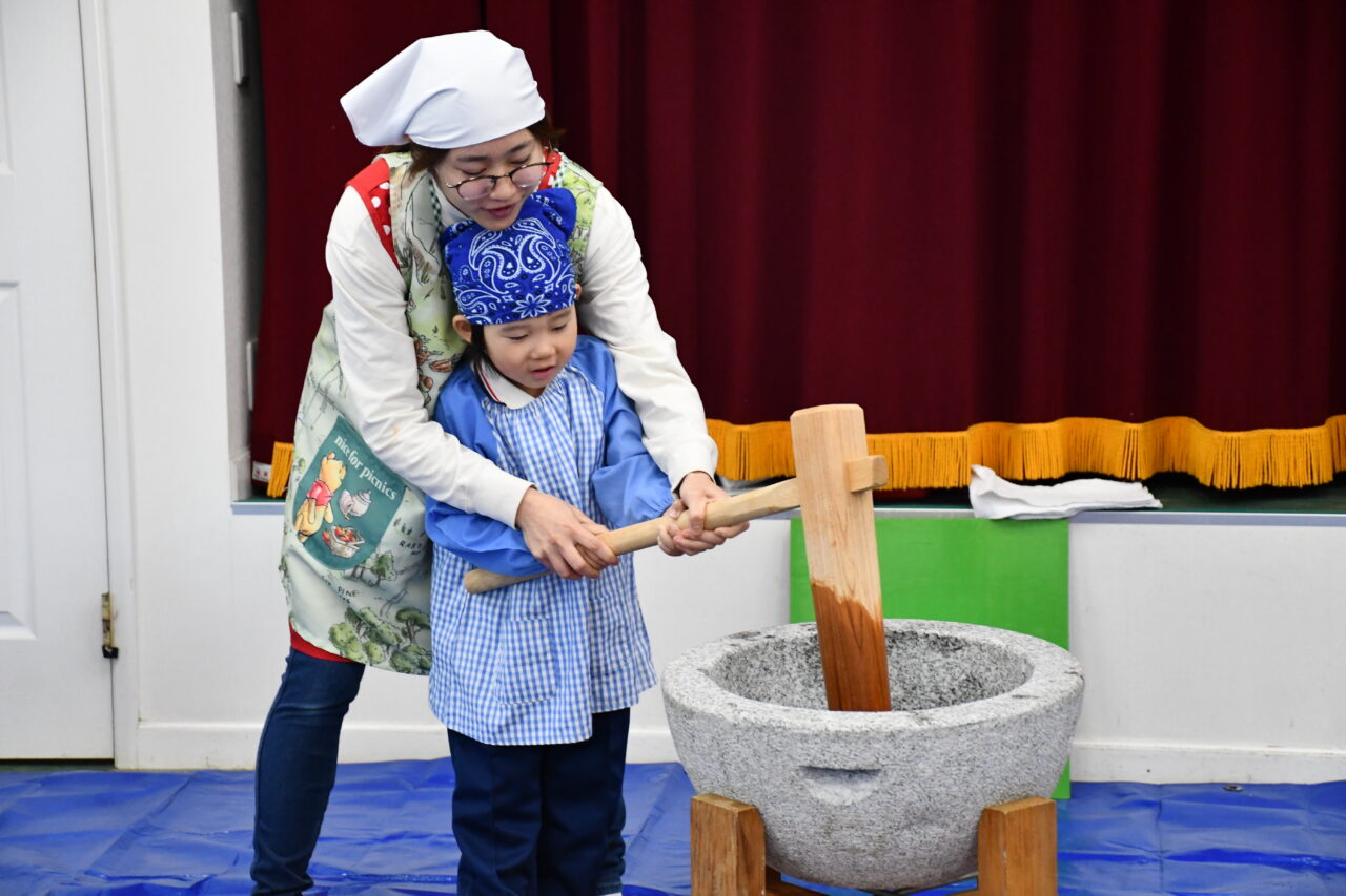 実際に杵と臼でついたお餅は格別で、つきたての美味しいお餅を沢山おかわりをした子どもたちでした。