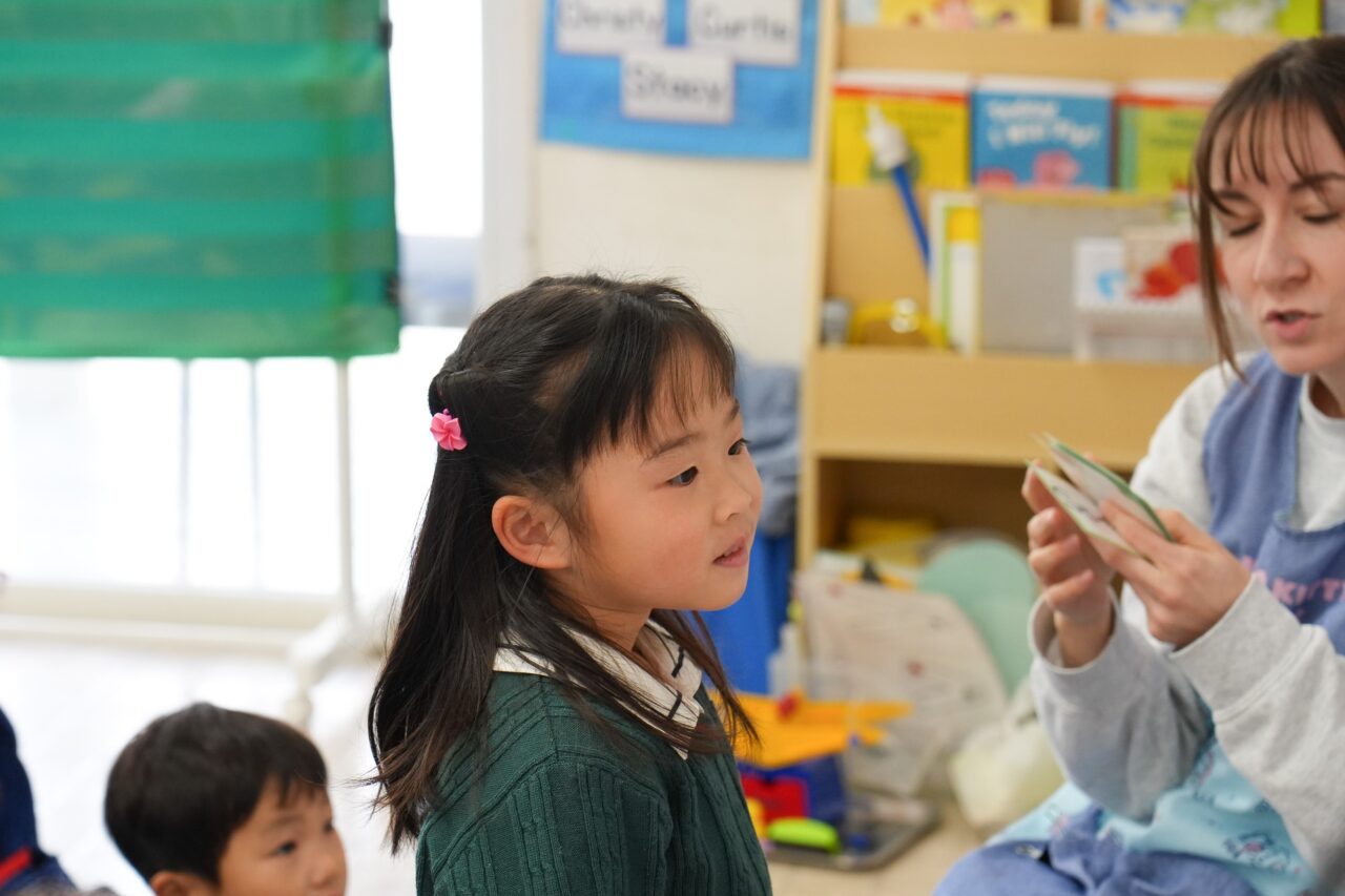 「子どもたちが積極的に参加して発言している様子、頼もしく、嬉しく拝見しました。単語の羅列ではなく、文章にして話すトレーニング、絵本の英語を一人で読むなど、ご指導のクオリティの高さが伺えました。実験では予想、観察、結果の確認と4歳児さん対して、本格的な流れで取り組めているようで、準備や計画などありがとうございます。先生も大好きで、お友達とも仲良く、楽しく通わせていただいており、感謝しています。」